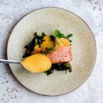 Apple, sorbet, brown butter, puff pastry.